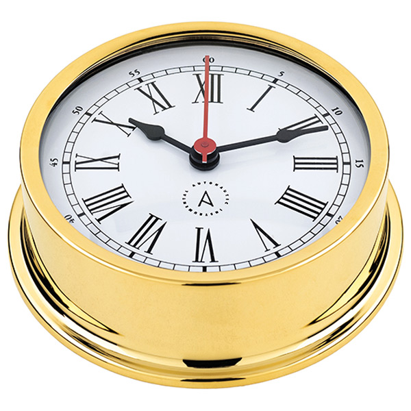 Autonautic Skibsur R120D-R er en del af Pacific 120-serien, designet til fritidsbåde og mindre erhvervsfartøjer. Med en base på 120 mm og en hvid skive kombinerer uret klassisk maritim elegance med moderne præcision. Fremstillet i forgyldt messing og udstyret med Quartz-værk for nøjagtig tidtagning. Easy Fix System sikrer nem adgang til batteriskift og justering uden afmontering. ISO 9001-certificeret kvalitet – håndlavet i Barcelona med over 45 års ekspertise.