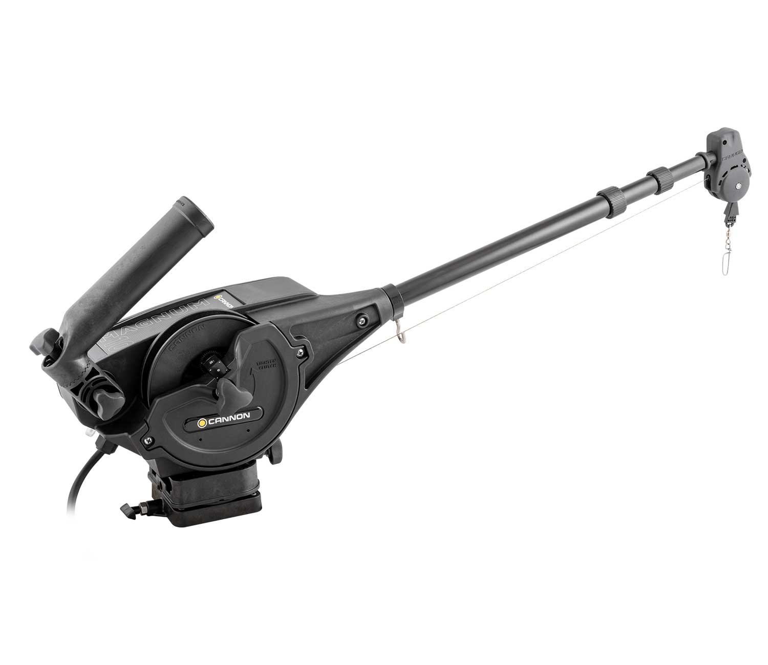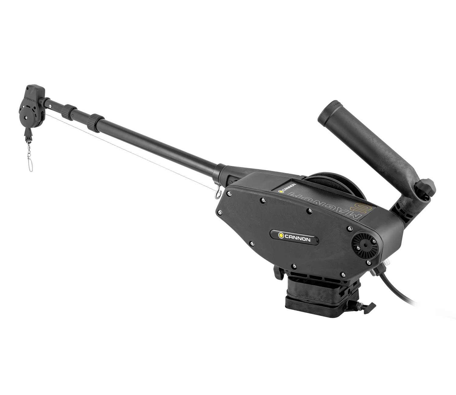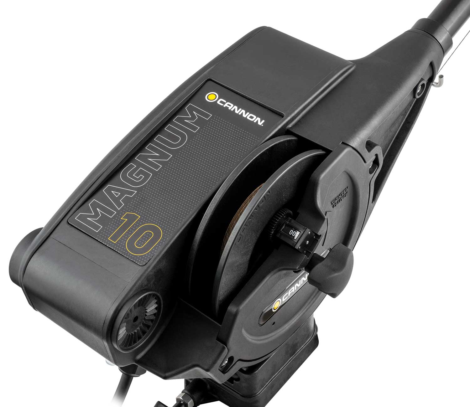 Cannon Magnum 10 er en elektrisk downrigger med en trecifret dybdetæller. Hastigheden på den dybe rig er meget høj, 75 m/min, hvilket er den hurtigste på markedet. Den downrigger har et automatisk stop, når vægten når vandoverfladen. Der kan anvendes lodvægte på op til 9 kg. Cannon Positive Ion Control giver mulighed for at skabe attraktive elektriske felter omkring båden, der tiltrækker fisk. Den downrigger advarer om lav batterispænding. MAGNUM 10 har en stærk teleskopbom, der kan justeres fra 61 cm til 134 cm. Den er velegnet til både salt- og ferskvandsfiskeri.