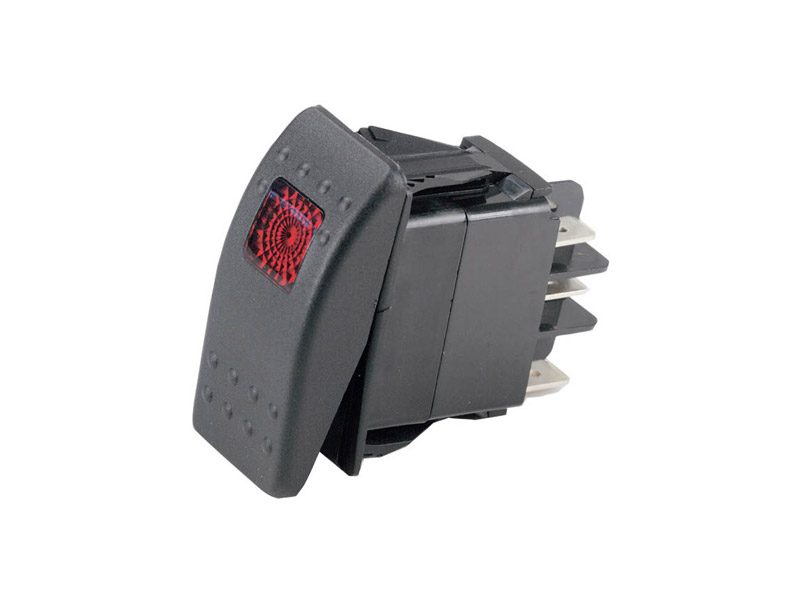 En meget populær switch, der bruges af mange bådebyggere. Certificeret til nedsænkning under tryk (frontpaneltætning). Udskiftning af panel er meget let, der kræves ingen værktøj, kontakthuset kan udskiftes.