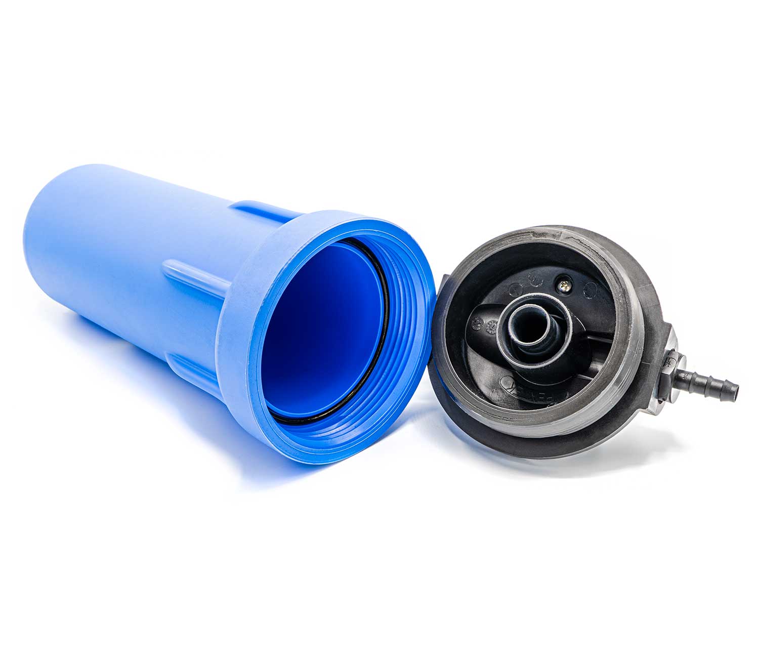 Komplet vandfilter i slagfast plast og med aktivt kulfilterindsats. Filter med aktivt kul til ferskvandssystem om bord. På låget findes en knap til luftning og trykudligning ved udskiftning af filterindsats.