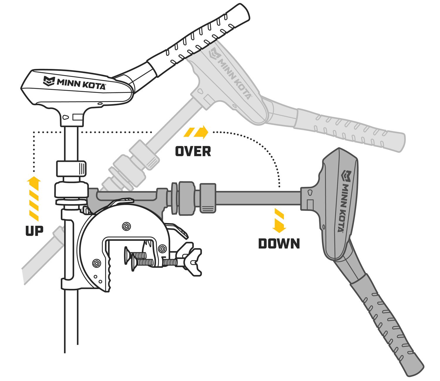 Hurtig rig højdejustering med Traxxis Quick-Lock gør dybdejustering meget let. Det er også muligt at justere friktionen på styretøjet, så man kan låse motoren i en position eller justere styretøjets inerti. Vipning af motoren op og ned er forbedret på Traxxis-motorerne, hvilket gør det meget nemt at folde motoren op og ned med et enkelt håndgreb. En batteriindikator er monteret oven på motoren for nem aflæsning ved et tryk på en knap.